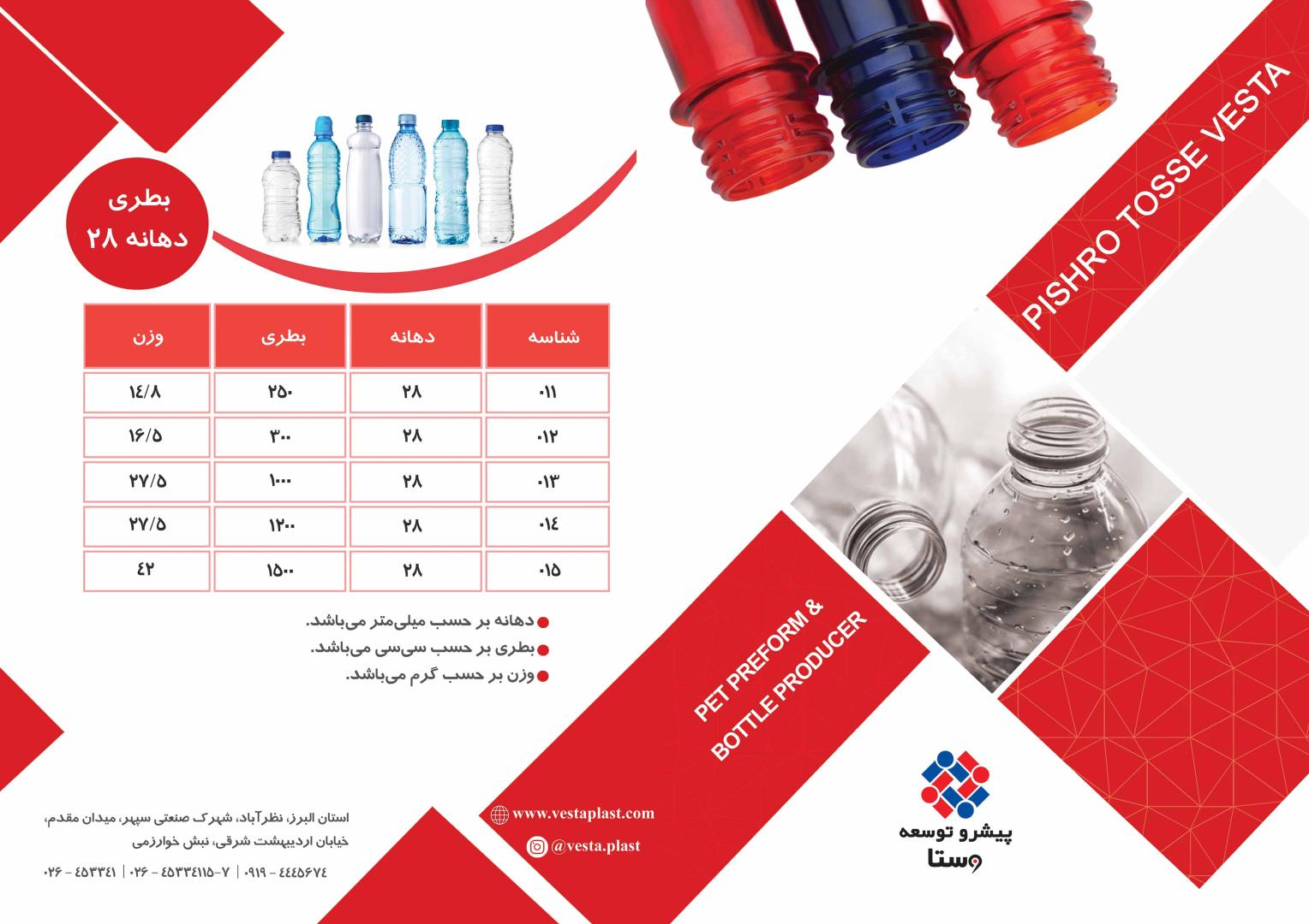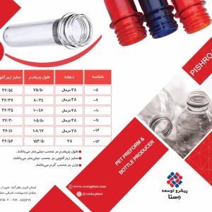 2) تولید و فروش عمده انواع بطری پت در دهانه و اوزان مختلف