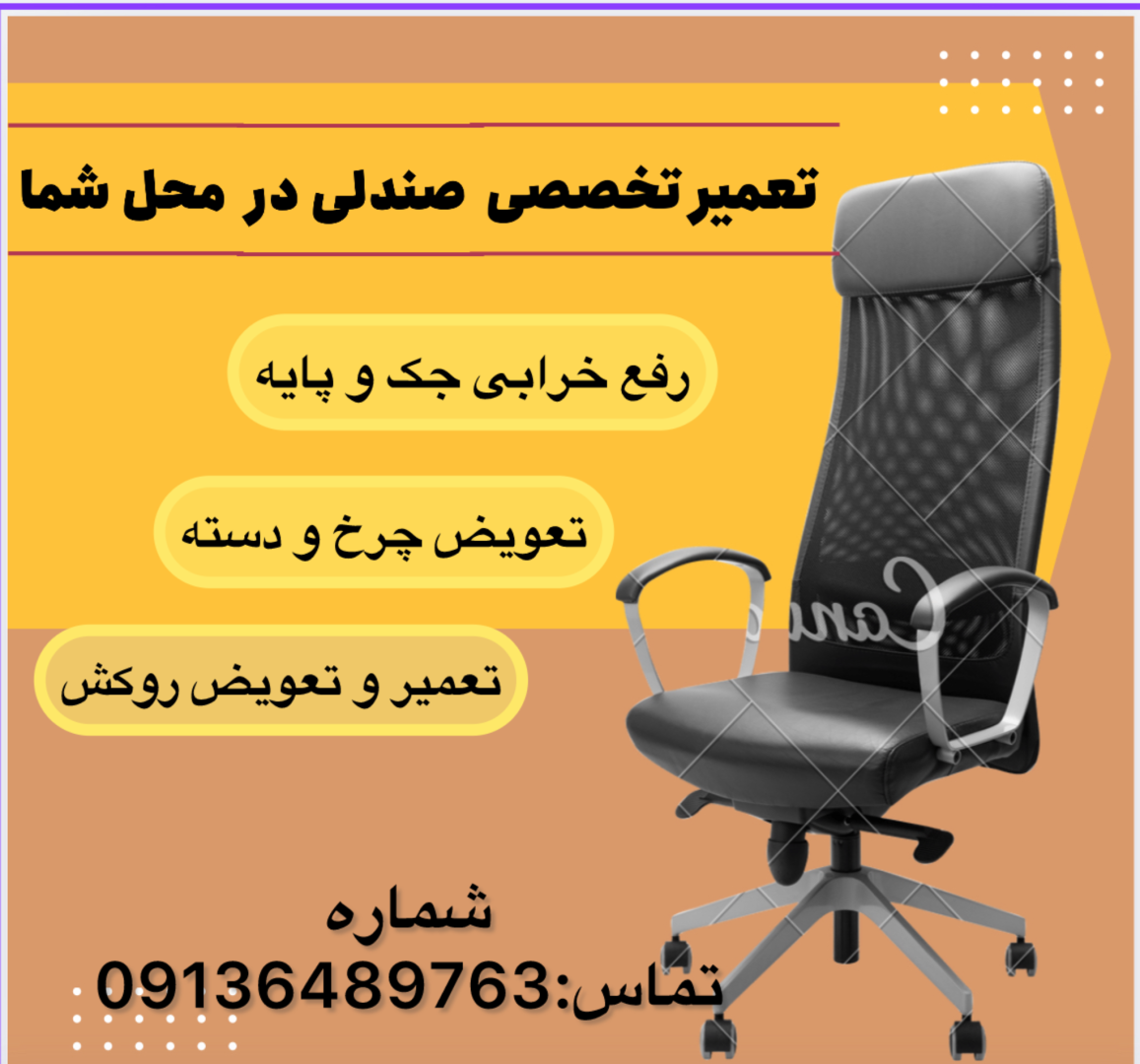 #تعمیرات_صندلی #تعمیر_صندلی_اداری #تعمیر_صندلی_مدیریتی #تعمیر_مبل_اداری #تعمیرات_در_محل #تعمیر_صندلی_در_محل #تعمیر_مبل_اصفهان #صندلی_اداری #تعمیرات_سیار #خدمات_صندلی #تعمیر_صندلی_اصفهان #sandali_kian #اصفهان #مبلمان_اداری #تعمیر_صندلی_گردان