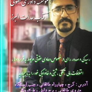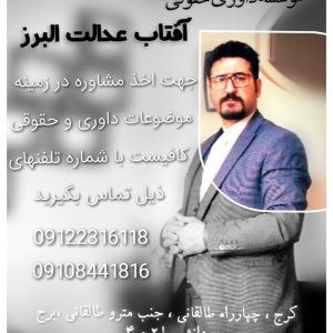 موسسه داوری حقوقی آفتاب عدالت البرز در نظر دارد جهت تکمیل کادر خود از وکلای کارآموز دعوت نماید تا در صورت تمایل در راستای همکاری با این موسسه اقدام نمایید